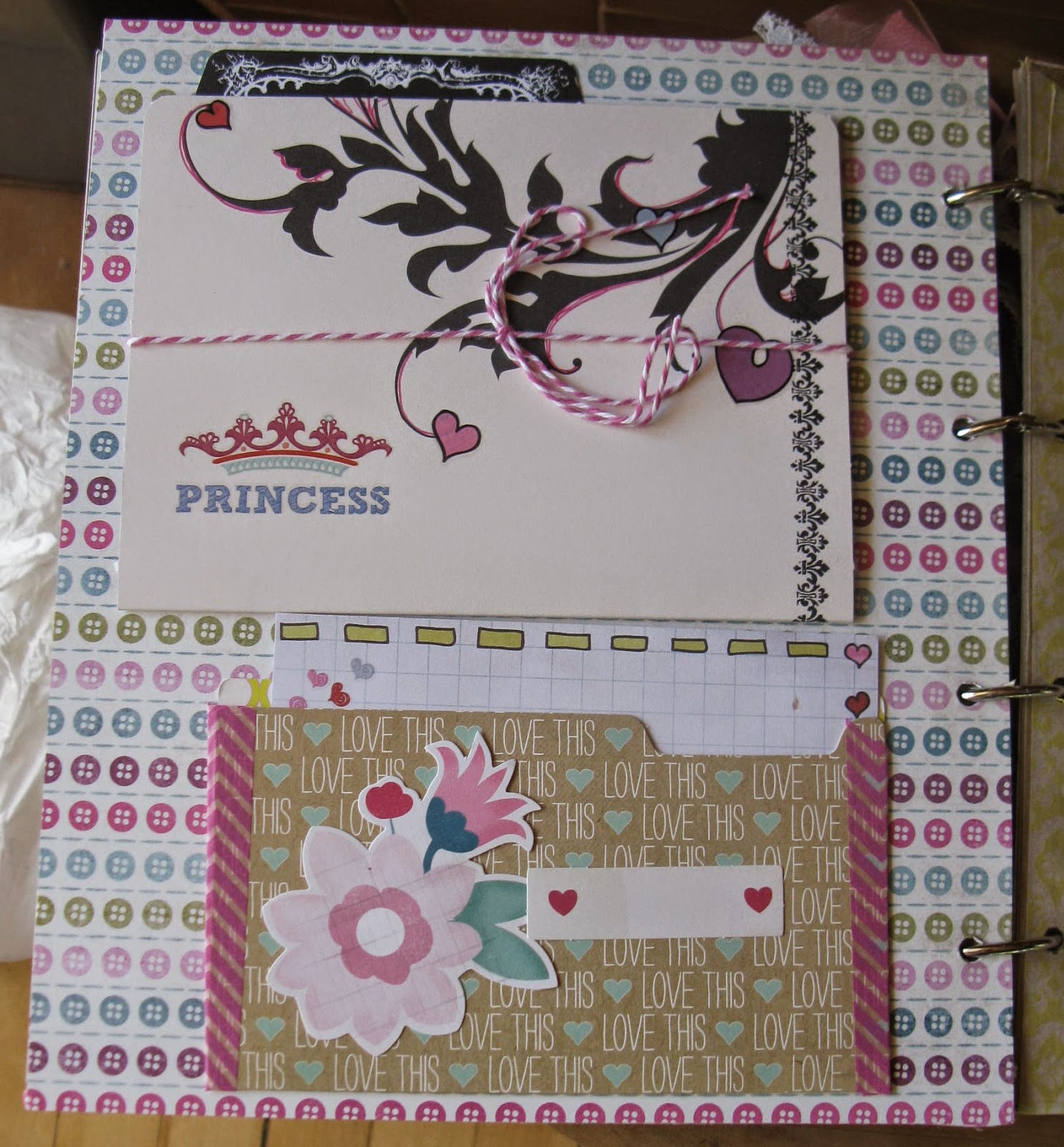 | Paper from October Afternoon; journal tag from Echo Park Sweet Girl; hearts punched with Fiskars heart punch; sticker elements from Fancy Pants. Pink acrylic bow from stash. |